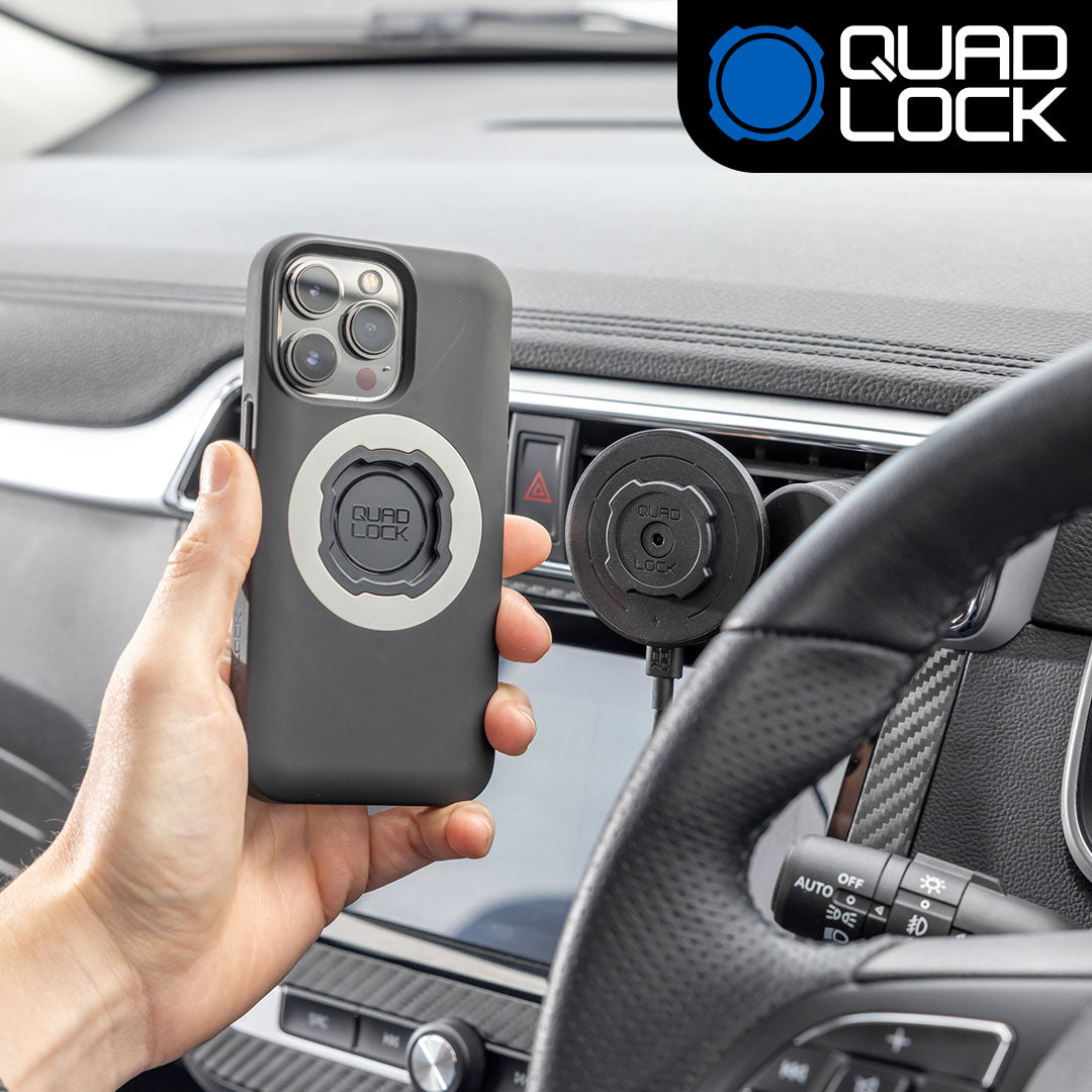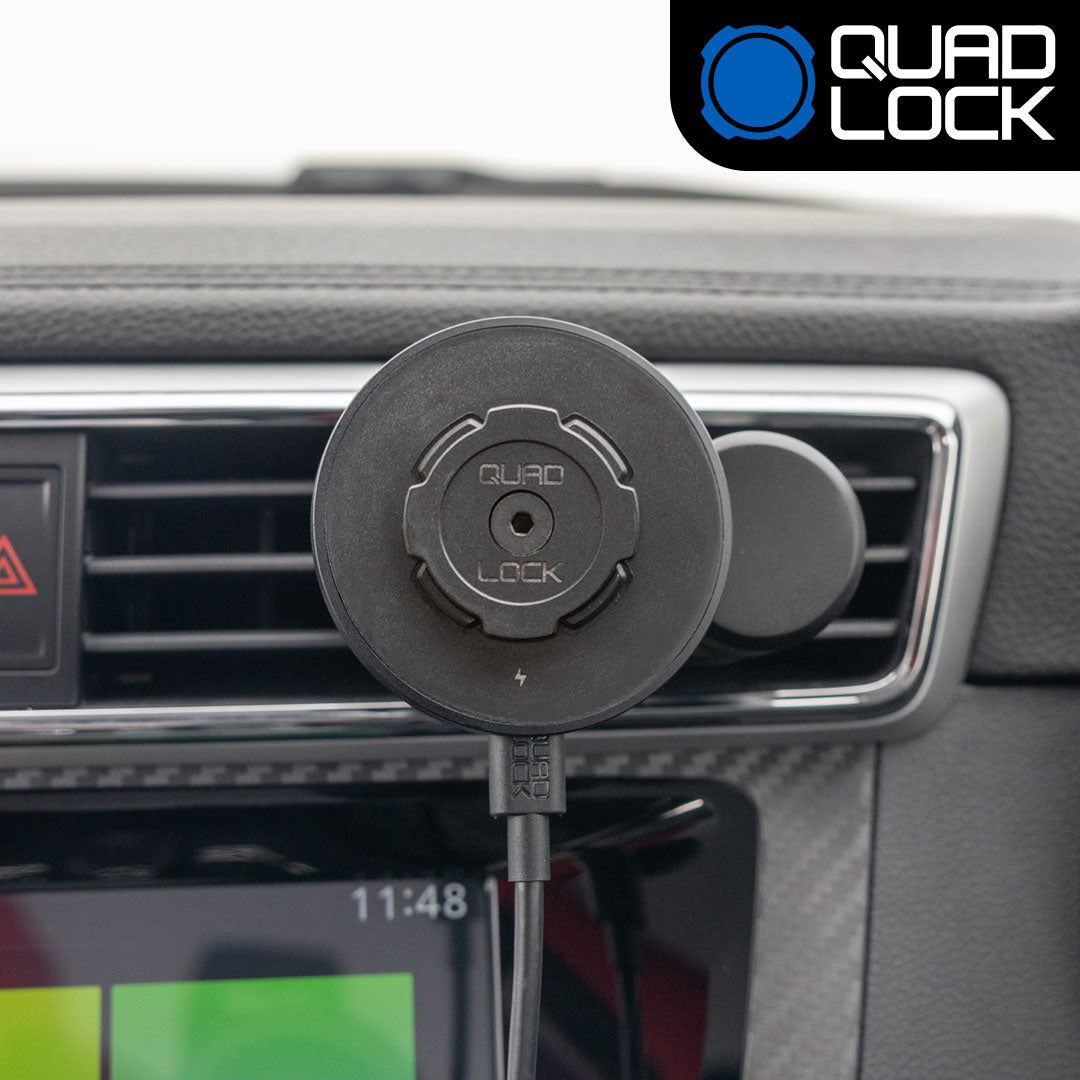 The Quad Lock® Car Vent Mount lets you securely mount your smartphone in your car on compatible vents. Integrate the Wireless Charging Head for fast wireless charging, or use a MAG Head for easy convience.