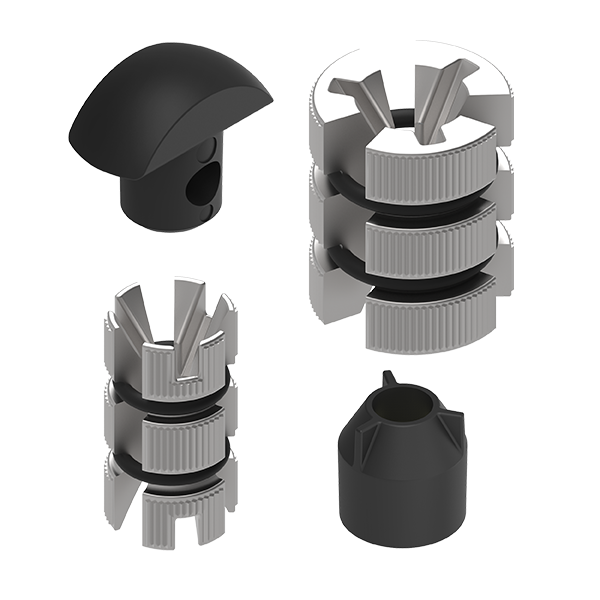 Replacement spacers for the Quad Lock® Fork Stem Mount. Expanding clamps to fit tube sizes 12.7mm to 25mm in diameter.