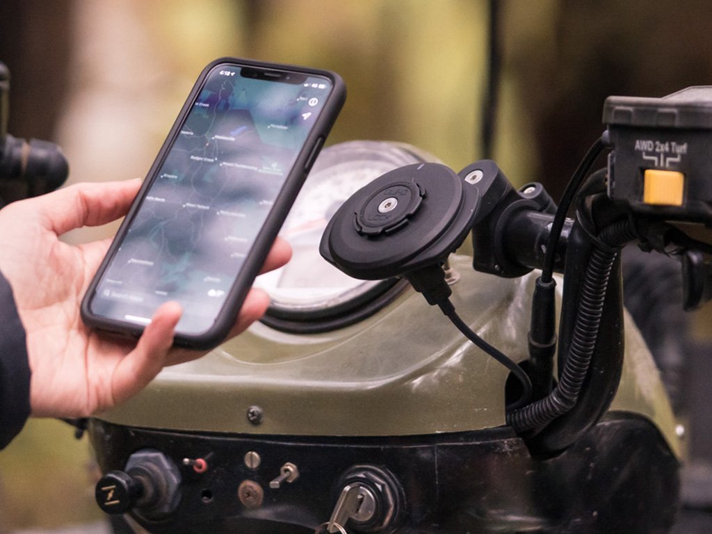 Charge your smartphone on the go with the Quad Lock Weatherproof Wireless Charging Head. Compatible with any Quad Lock 360 ARM or BASE. With fast charging capabilities, you can now use GPS navigation without draining your smartphone battery. Water Resistant with a dual stage lock.