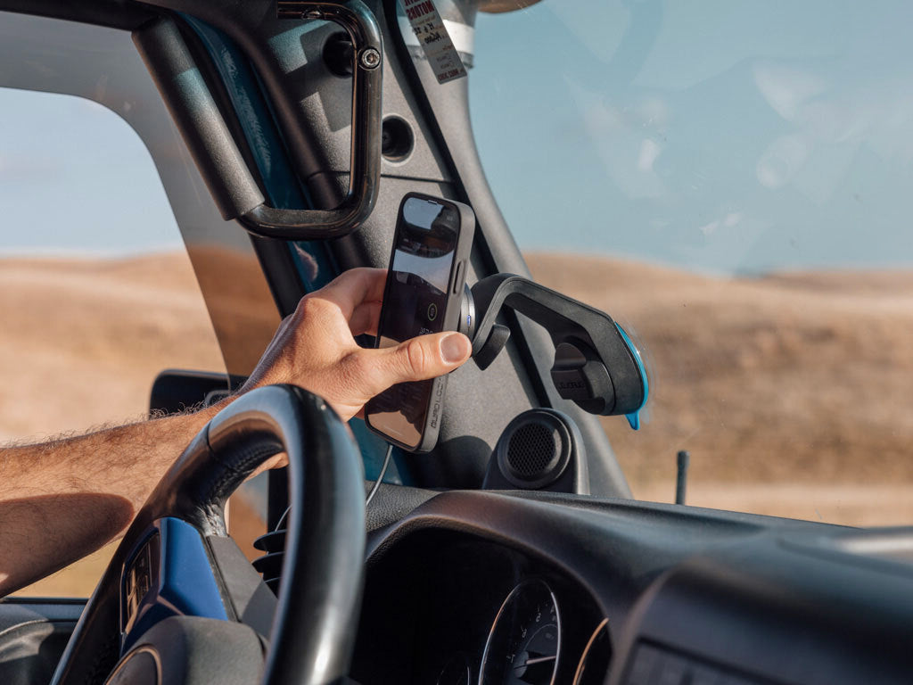The Quad Lock® Car Suction Windscreen/Dash Mount lets you mount your smartphone in your car. Integrate the Wireless Charging Head for fast wireless charging, or use a MAG Head for easy convience.